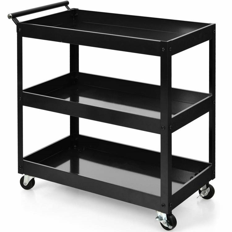 Black Steel Frame Kitchen Serving Utility Cart on Wheels with 2 Bottom Shelves